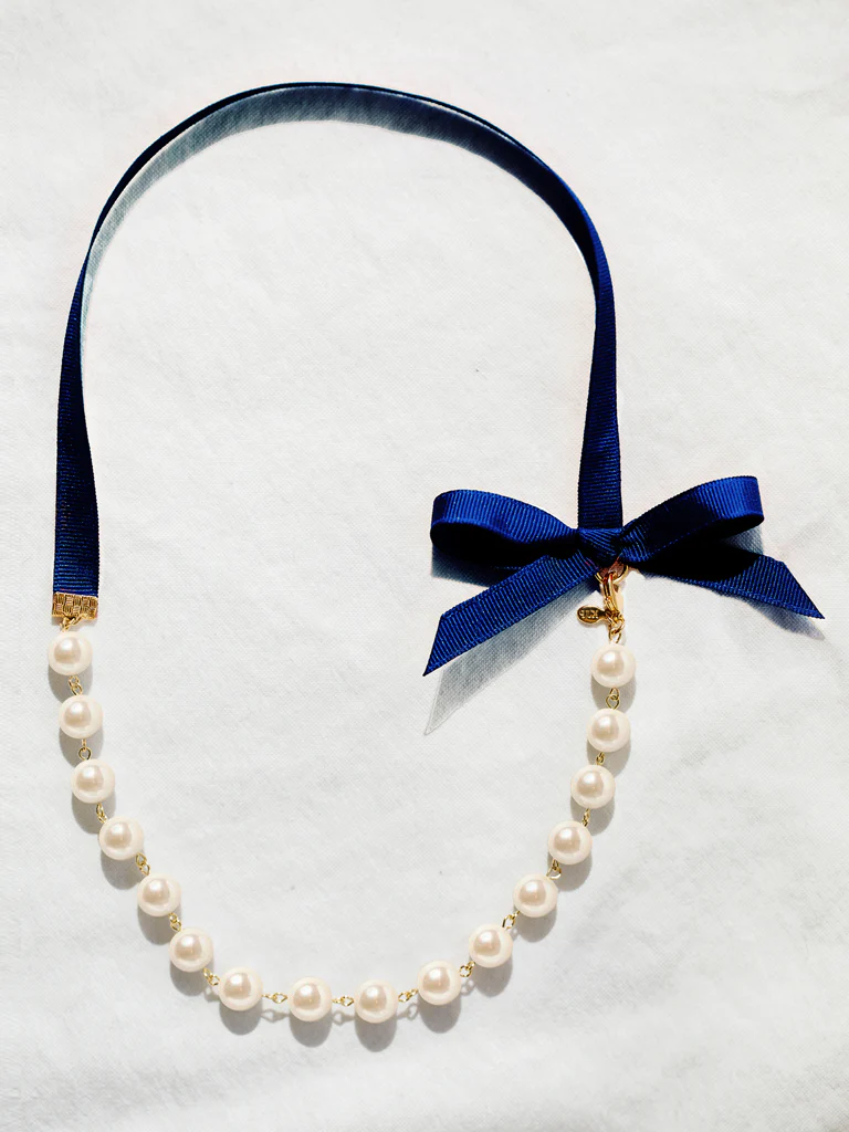 We combined two of our favorite things bows and pearls for a subtle statement necklace that will go with everything.